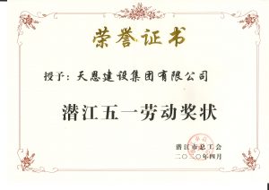 天恩建設(shè)集團(tuán)有限公司榮獲潛江五一勞動獎(jiǎng)狀